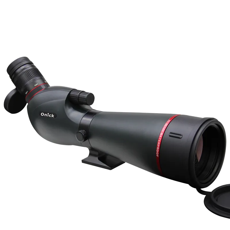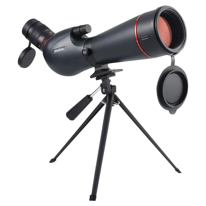 Onick Scout Series 20-60x80ED Monocular Target Scope has a military standard rangefinder graticule, which can calculate the target distance and size using fine-scale positions; and adopts a 27mm large eyepiece design and an 80mm large-aperture objective lens.
